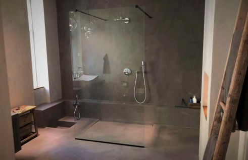 Microcement kan udføres direkte på eksisterende overflader, hvilket betyder at vi kan renovere rum uden at fjerne eksisterende materiale som eksempelvis trægulve, linoleum eller fliser.